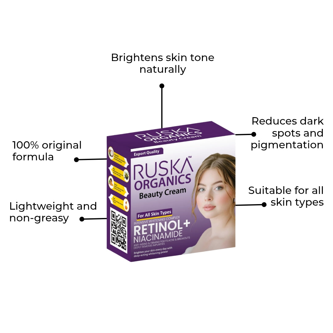 Ruska Organic Beauty Cream is the best beauty cream in ,Pakistan with Retinol & Niacinamide. This beauty cream is designed for Pakistani skin types. It is suitable for men and women and it is the ideal choice for those looking for a fairness cream.
